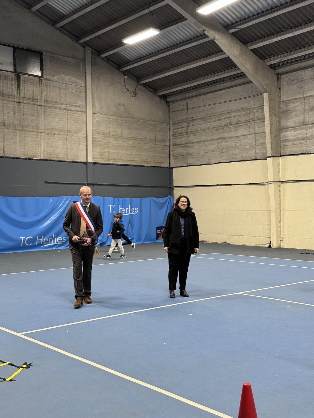 - puis au Tennis Club d’Herlies où Madame la Ministre a pu échanger  avec JP Tembuyser, son président et n’a pas hésité à taper quelques balles avec les enfants. 🎾